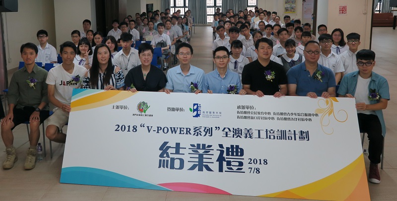 澳門社區義工聯合總會昨舉辦“V-Power系列”全澳義工培訓計劃結業禮,一百五十名學員獲頒證書。理事長鄧文基表示,該會第五年舉辦計劃,期望透過系列培訓讓學生理解義務工作的意義,明白從做義工到團隊合作精神的重要性,提升學員綜合能力。
