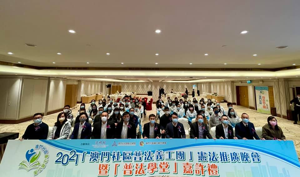 “二○二一澳門社區普法義工團”憲法推廣晚會暨“普法學堂”嘉許禮昨晚舉行,為期半年的普法學堂共五十名學員參與。主辦單位冀藉此建立大眾可接觸的平台,向居民推廣與生活息息相關的法律知識,認識自身權利及義務,並推動全民知法守法的重要性。