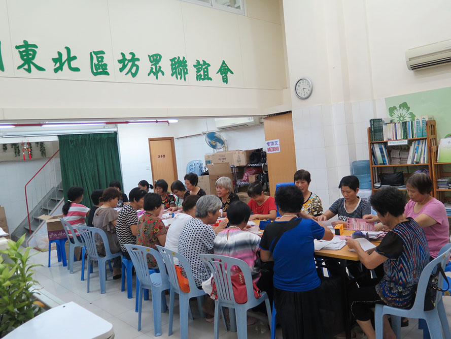 為了讓更多本坊會會員清楚了解本會過去或者未來兩個月的活動,本會會定期印製會訊,義工們前來坊會協助裝封及派發至就近會員家中信箱。同時也籍著摺會訊這一契機讓義工們,讓義工們小聚,增加彼此溝通,發揮睦鄰友愛精神。