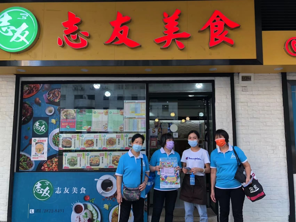 走訪區內商鋪,宣傳關愛社區大行動的意義,呼籲大家關愛弱勢人士。