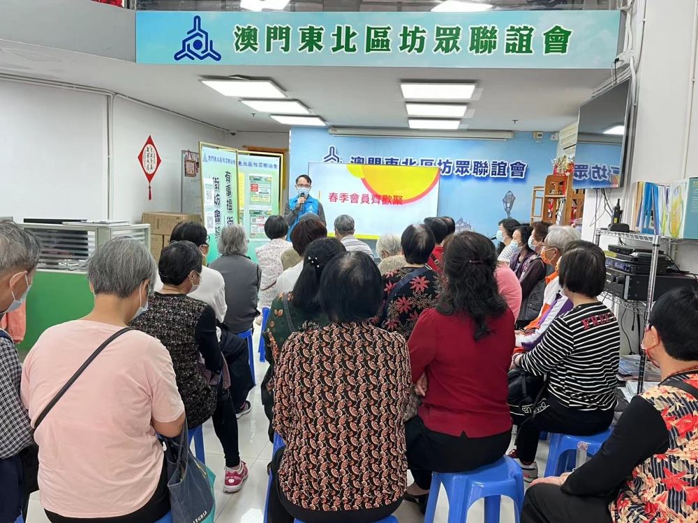 舉辦慶三八齊歡聚活動,義工幫忙溫體溫入檢查行程碼。