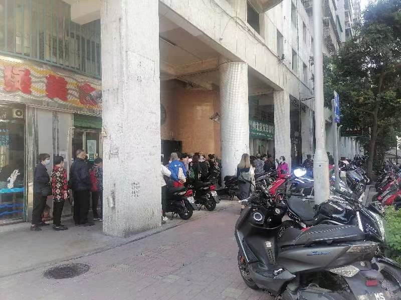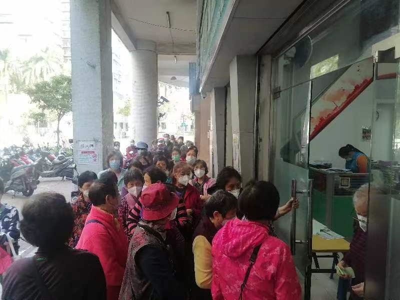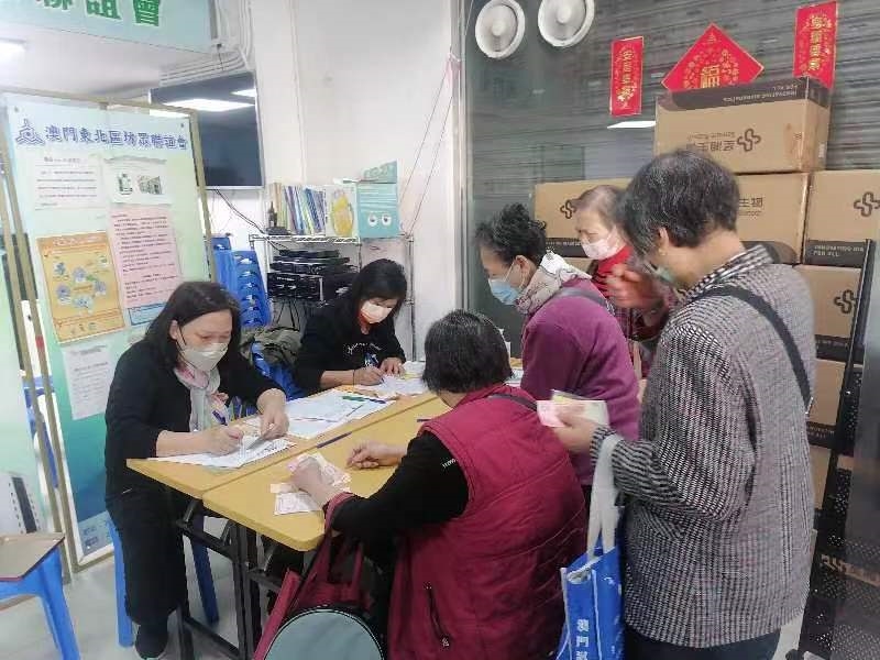坊會活動報名。義工幫忙維持秩序。