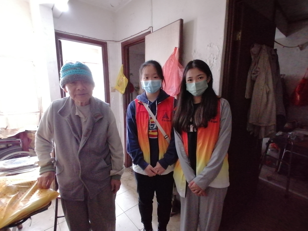 與青年義工上門探訪獨居長者,讓他們感受坊會的溫暖。