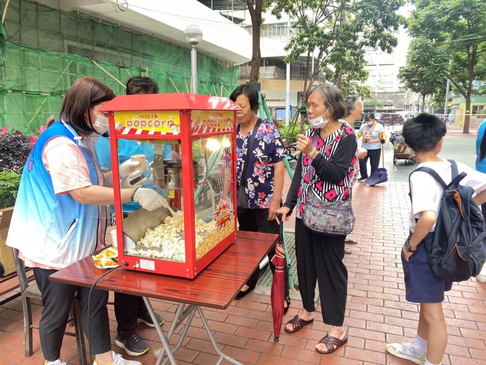 東北坊會招募新會員,義工學習扭氣球吸引街坊入會。