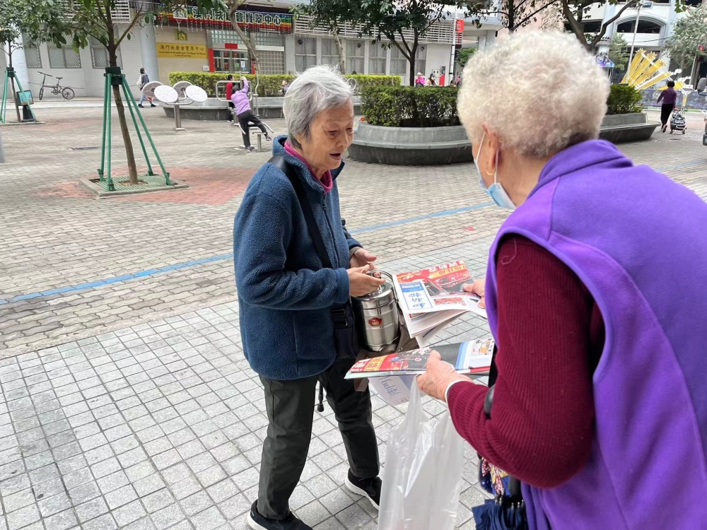 義工落力向市民派發總會的宣傳刊物,讓市民對總會有更多的認識。