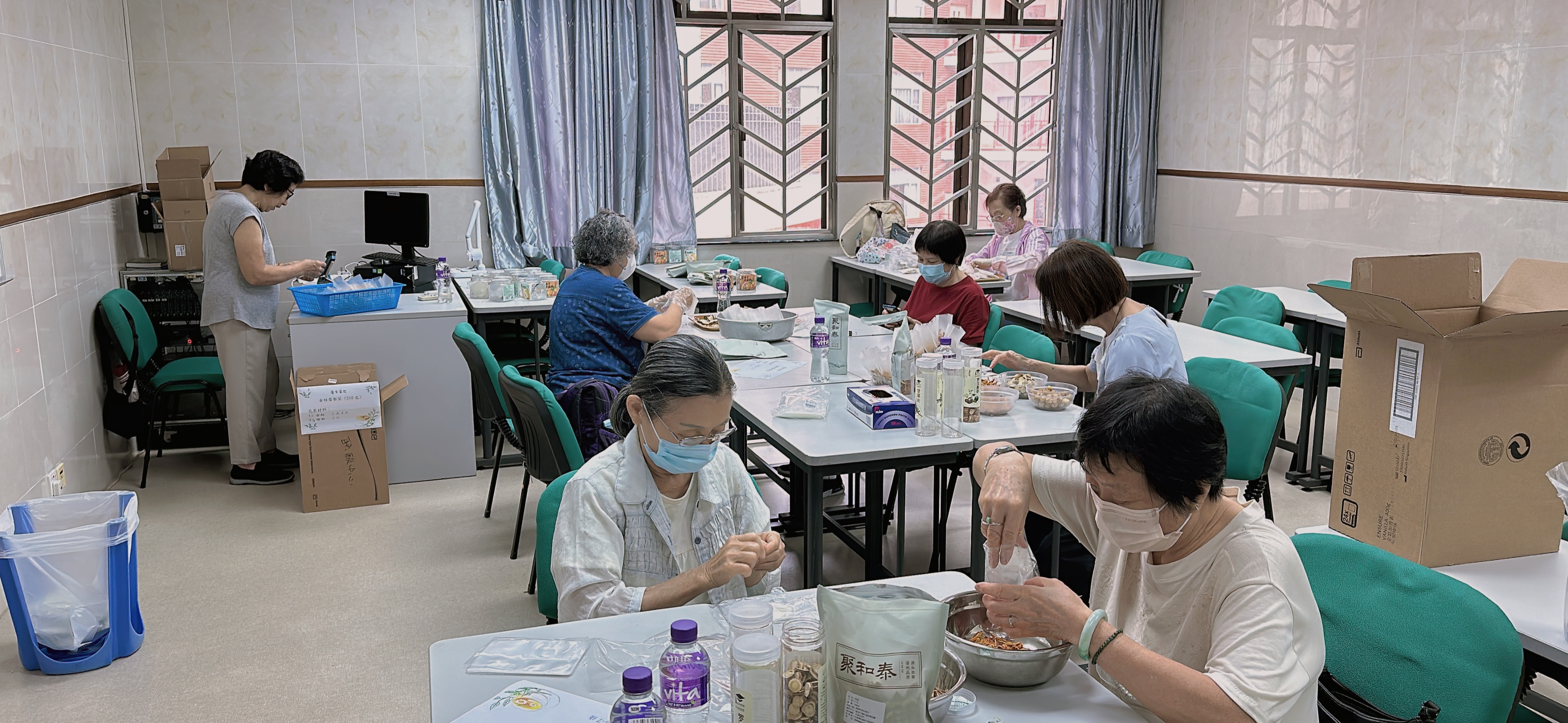 義工們順利完成製作60盒愛心養生茶包,贈予獨居長者們。