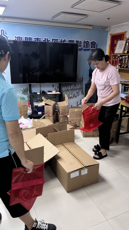 義工幫忙裝福包禮物