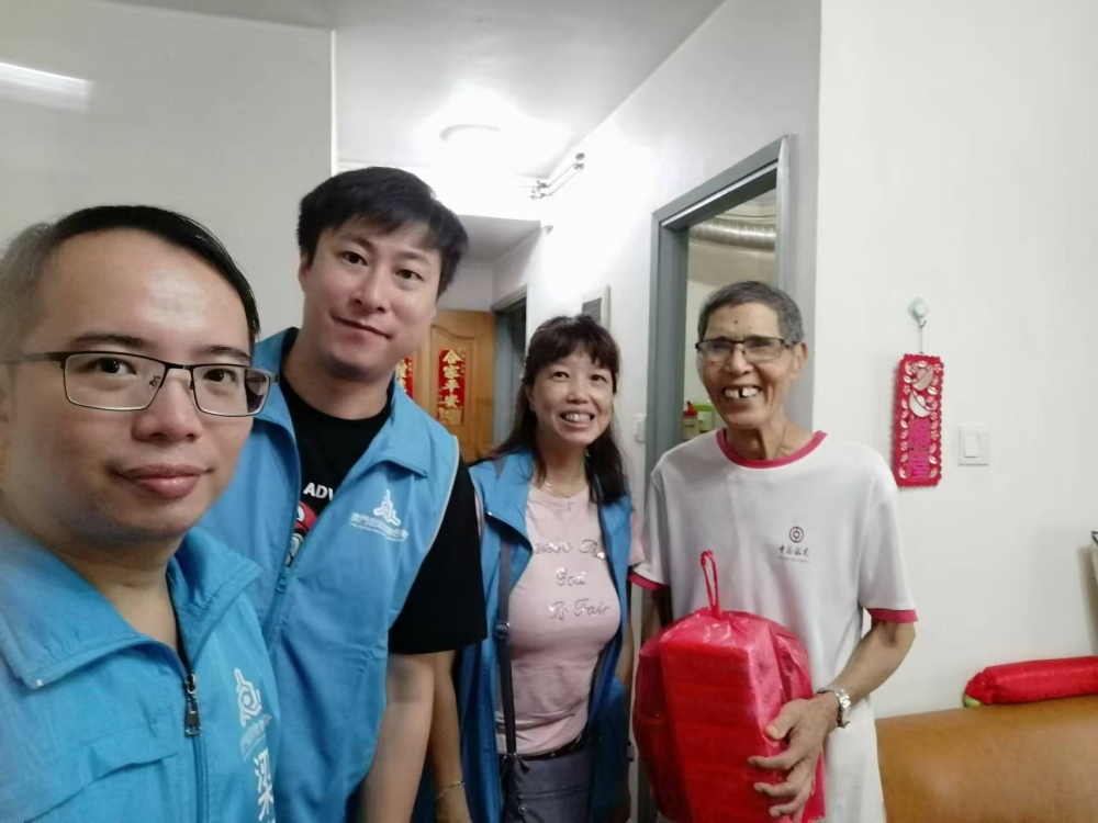 藉著中秋佳節的來臨,坊會青委組織青年義工上門探訪獨居老人并送上禮物及節日問候。