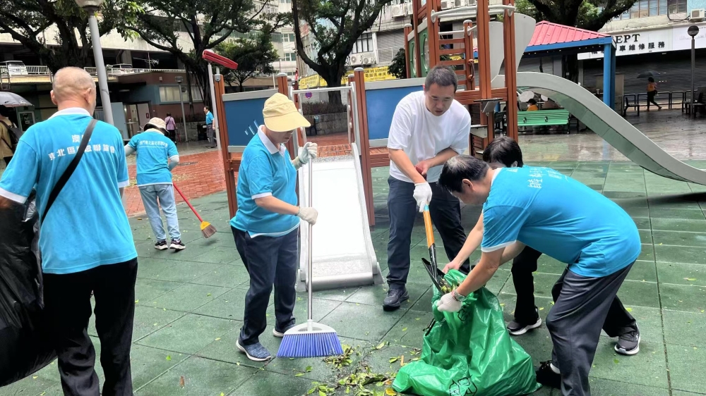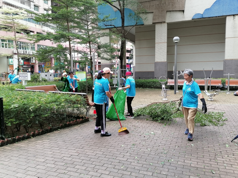 臺風過后,坊會組織義工到黑沙環公園及南澳休憩區清潔垃圾。