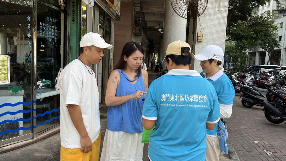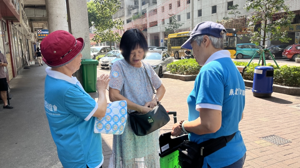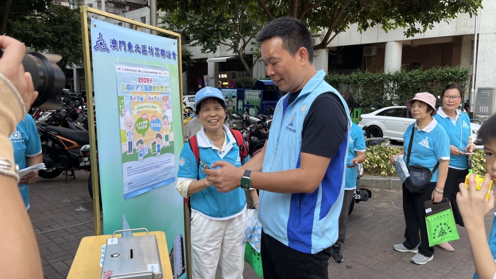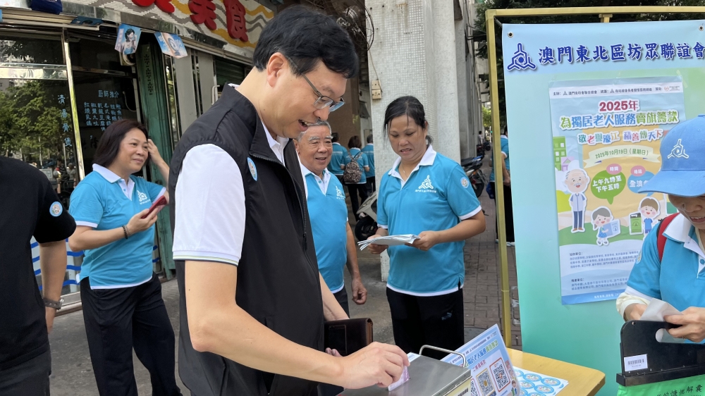 坊會組織義工上街為獨居長者賣旗籌款。