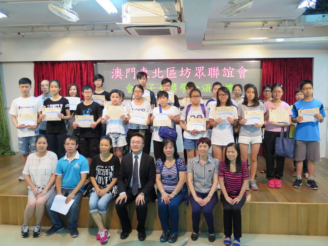 澳門東北區坊眾聯誼會日前假座澳門坊眾小學禮堂舉行頒獎禮。今年獲獎的會員子女中,小學組有110人,中學組有77人,成績令人鼓舞,同時獲獎者出席人數過百。