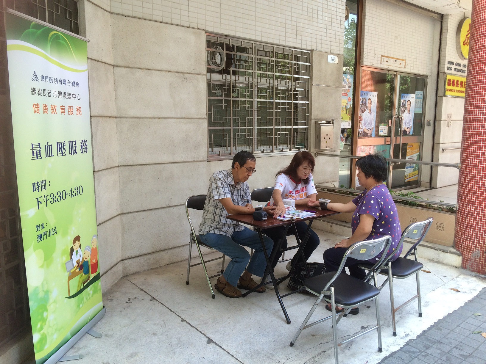 義工們積極參與是次量血壓街站,且吸引了不少街坊前來參與量血壓,反應熱烈。