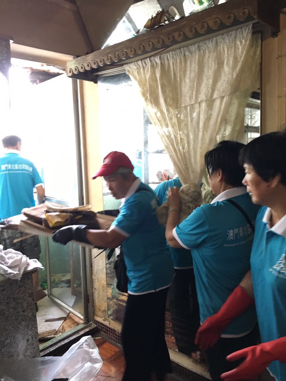 8月24日獨居長進因823風災到坊會求助,坊會組織7名義工幫助其清理垃圾。