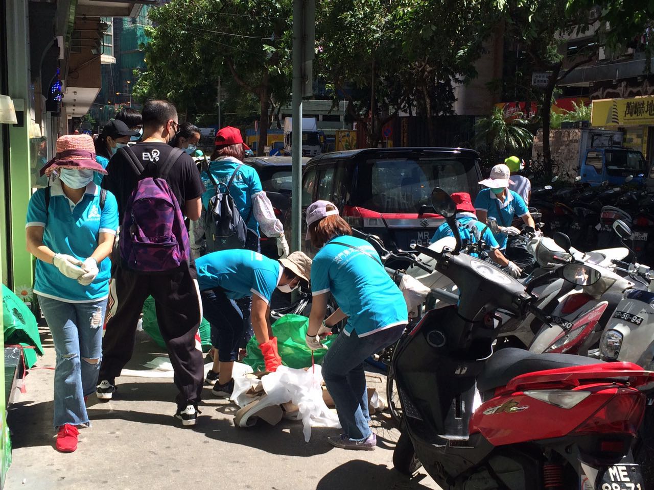 8月26日組織義工21人及志願工作者20人到社區清理垃圾,到青洲社區清理垃圾及上樓派水和飯。