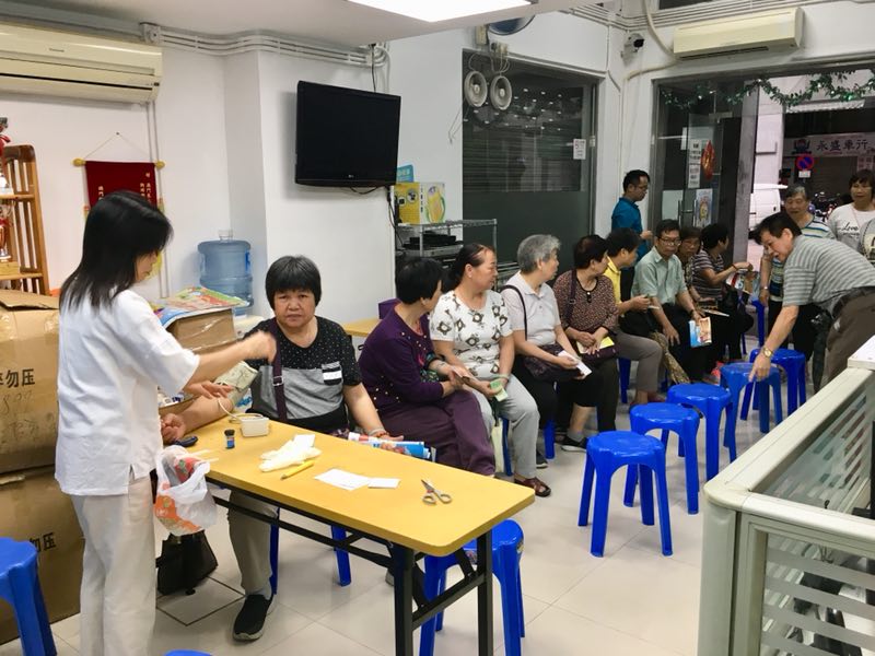 為宣傳本會會務,本會組織義工及有專業護士的義工為本區居民測血糖量血壓。